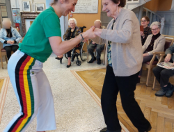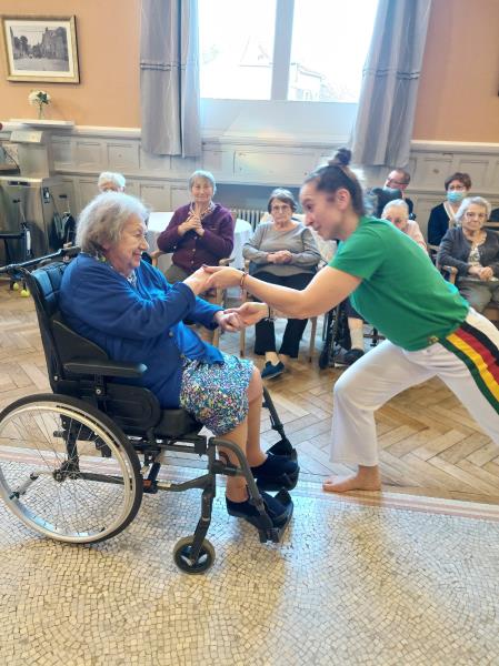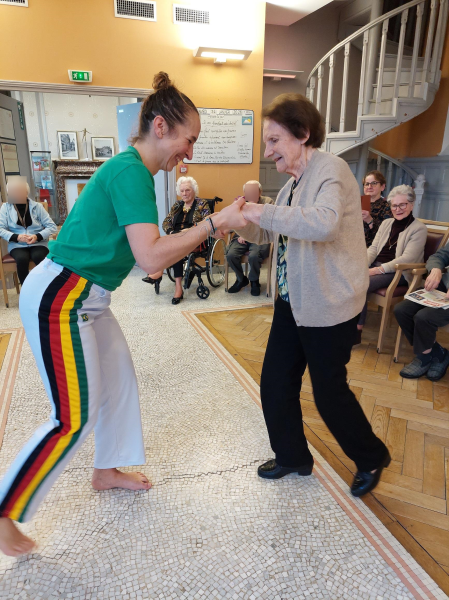 Certains résidents ont testé aussi bien certains mouvements, que le pandeiro (tambourin), tous ravis de découvrir une autre culture.